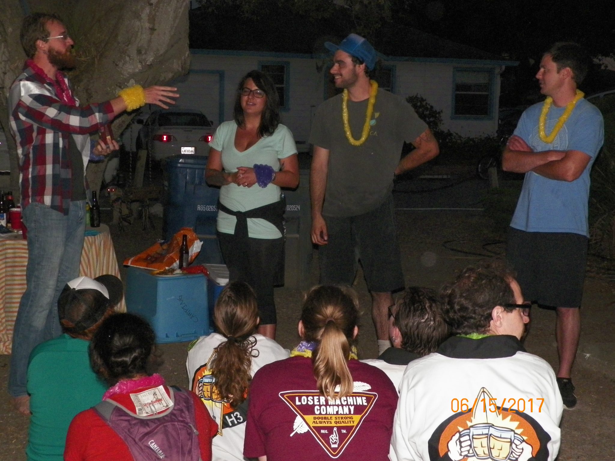 This was a Bodacious Birthday Bash disguised as a Hash! We also took full advantage of the Beachy/Hawaiian theme as the Hawaiian shirts and leis were out in full force! Even the dogs got into the theme.